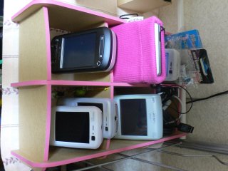 電脳小物の整理に、100円ショップで組み立て棚を買った。本当は縦に置いて使うものだが、私は横に寝かせて使うことにした。一つ一つの枠に小物やACアダプタやケーブルがちょうど入って便利だ。色合いのあうランチョンマットも下に敷いてコーディネィト。どうかこれ以上増えませんように。