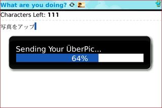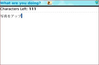 写真を撮ると、自動的につぶやきを書き込む画面に戻る。What are you doing?の右側に、アイコンが一つ増えているのが見えるでしょ。