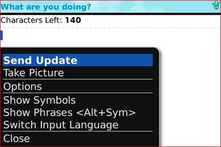 つぶやきを書き込む画面になるので、ここでTake Pictureを選ぶ。