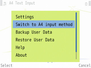 ZTA4のOptionsから、Switch to A4 input methodを選ぶと、中文入力に切り替わる。+Jの設定で松茸を有効なFEPにした状態でこのSwitchを選んだが、ZTA4の中文入力に切り替わった。