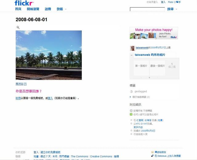 上記のサイト中程にある「Don’t waste your time:Grab it here!」をドラッグして、ブラウザのブックマークに登録する。そして、Flickrの画像の画面で、ブックマークから「Don’t waste your time:Grab it here!」をクリックすると、Flickr内にGoogleマップが現れる。