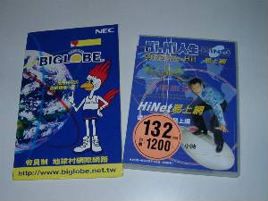 ローミングでネットにつないでいると帰国後の請求がいくらになるか怖い。そのため台湾のプロバイダ台湾BIGLOBEとHiNETのスターターキットを使うようになった。パソコン店やコンビニで購入可能だ。複雑な登録手続き不要で、キットに入っているIDとパスワードを使って、すぐにネットにつなぐことがでる。この料金体系は1年間で25時間使用可能とか、2年間で100時間使用可能とかなどで、旅行者には都合がいいと思う。