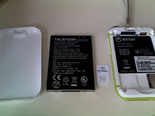 中はこんなふうになってます。ふたを開けると、本体とほぼ同じ大きさのバッテリが、どかーんと鎮座している。かなりがっちりはまっているので、はずすのに爪が痛かった。SIMカードはもちろんFOMAカード。下手にはずすと、手持ちのb-mobile3Gや、Bold用のと区別がつかなくなるので、早々に元に戻した。