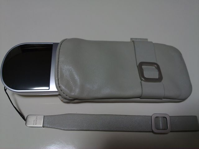 裸運用はさすがに傷が付くんじゃないかと心配で、小さなポーチをあれこれ探したが、希望の素材や大きさのがなかなか見つからなかった。あきらめかけたところに、ふと、手持ちのケースを掘り出してみると、あら、ぴったりのが見つかった。電脳中心買物隊 in 香港で、以前販売されていたノキアのN seriesのケースだ。ケースの内側は、素材がベルベットで柔らかく、ケースと同色のストラップも付いている。