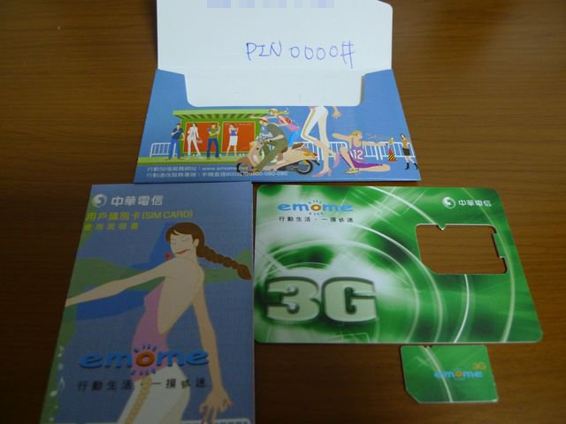そしてここからが本題。先日ブログにアップしたデータ定額のSIMについて聞かなきゃ。まずは中華電信の該当ページを印刷したものを見せながら、このデータ定額を申し込みたいと言うと、可以とあっさりOK。プリントを見せて、あれこれこちらから説明しなくてはいけないのかと心配していたが、まったくの拍子抜け。パスポートのコピーを取って、申込書に何箇所かサインをした。カウンター内では、電話番号の一覧表を見ながら、SIMに番号登録をしていた。そして切り取らない状態でSIMをくれて、SIMをいれる紙のケースに、電話番号とPIN(これは全部共通)0000#を書いて渡してくれた。今回は3日で250元を購入した。