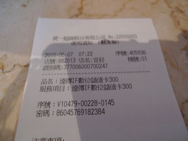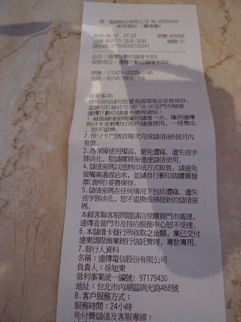 あとはいつものように遠傅のサービスセンターに電話して、この密碼を入力するとチャージ完了。