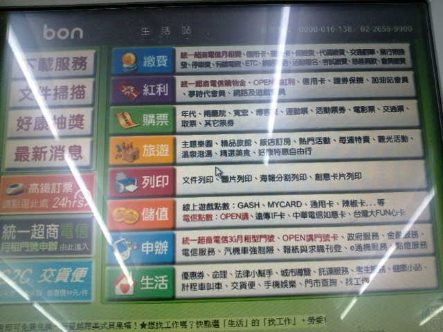 帰国後調べると、ibonの専用サイト、7-ELEVEN ibon 便利生活站を発見。しかもこのサイトには、各種サービスの操作DEMOがあった。これで次回からは自分でibonの操作ができる。