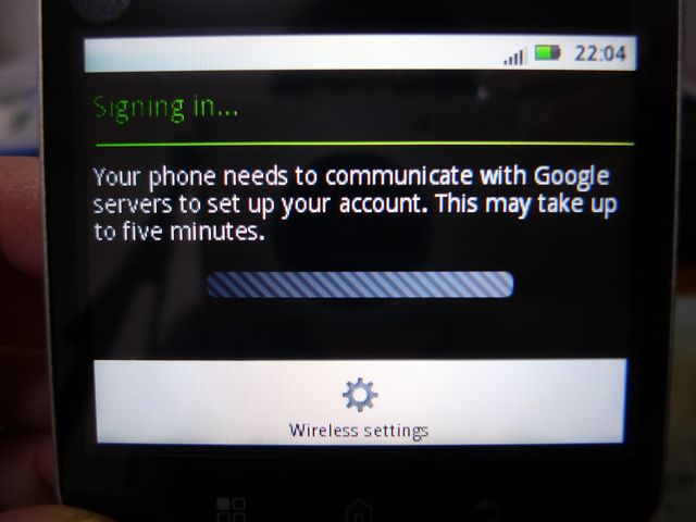 それからAPNを設定して、Googleのアカウントの設定へ。しばらくNetworkを探している模様。