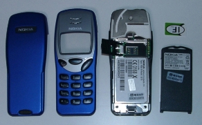 解体された3210、右上のIFと書かれた小さなものがSIMカード。