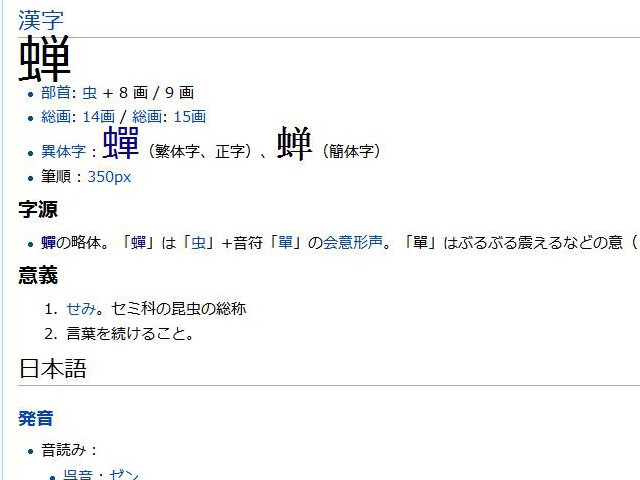 E71E72で使用中のフォント(M+1M+WenQuanYiZenHei.ttf)、先日「蝉」を入力しようとすると、ん? 小さな違和感を感じた。よく見ると、下の画像にある簡体字で表示されていた。