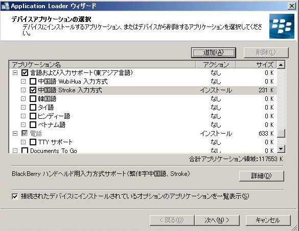 そしてファイルをPCで展開して、インストールしてみると、rim0x05000D07.sfiが36264KBと前回より大きくなっている。エディタで開いてみると、下記のように、日本語辞書に関する表記が見つかった。
