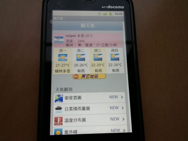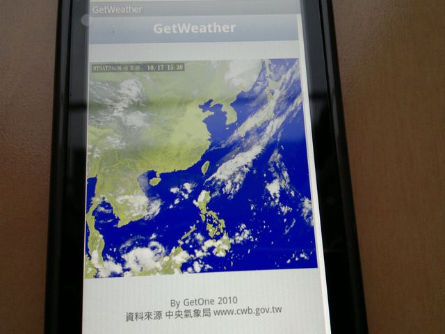 下のアプリは中華電信の、Hami Appsからダウンロードした「観天気(GetWeather)」というアプリだ。