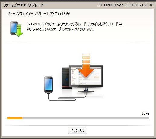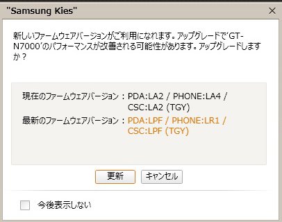 5月に入って、各地でAndroid 4.0へのアップグレードが提供開始と聞いたが、うちの端末はどうだろう? と試しにKiesで繋いでみると、来た!