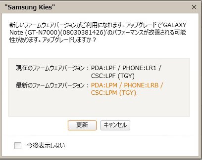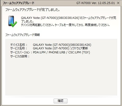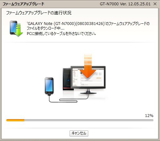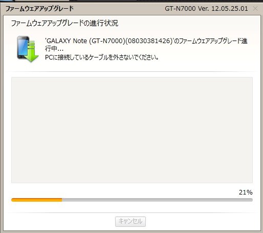 ところがこの作業に進む前に、PCと端末が接続されていませんとエラーが出て焦った。一旦ケーブルを抜いて、Galaxy noteのバッテリを外してとエラー解決の手順を踏むも、この作業にとりかかる前に、再びエラー発生。そこで今度はUSBケーブルを他のものに取り替えて見たら、無事クリア。
