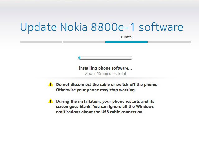 大切にしまいこんでいた8800 Sapphire Arte、時々充電して枯らさないようにしている。なにげなくNavifirmでファームのバージョンを調べると、知らない間に新しいファームが公開されている。あわててNokia Suiteとつないでアップデートチェックをすると、05.22から09.41に、大幅にアップされている。端末が端末なだけに、失敗は許されない。いつも以上にドキドキしながらの更新スタート。