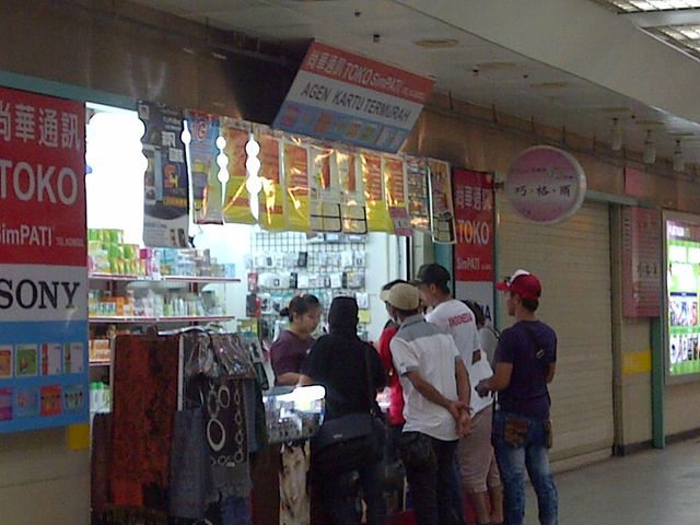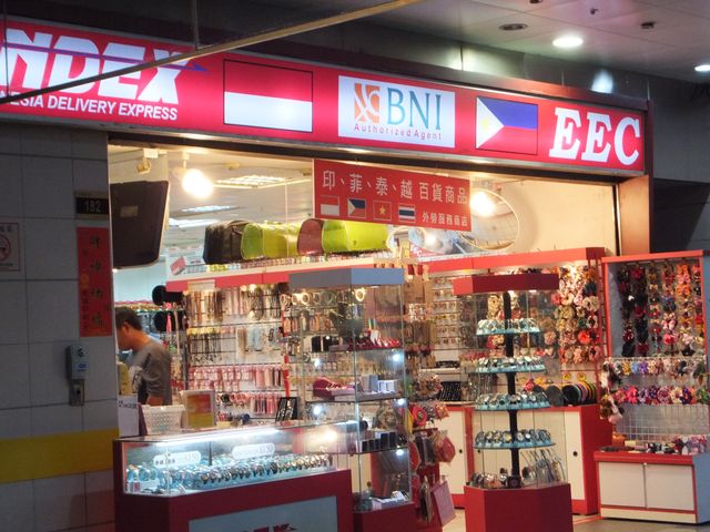 Y16出口より西には、外労と呼ばれる外国人労働者向けの国際電話カードやsimカードを販売する店が点在している。