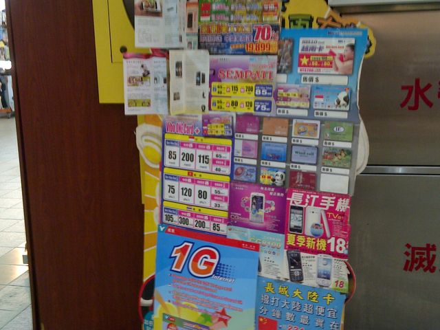 取り扱うキャリアは、中華電信、遠傳、台湾大哥大と威寶電信で、150元と300元の補充卡を販売している。