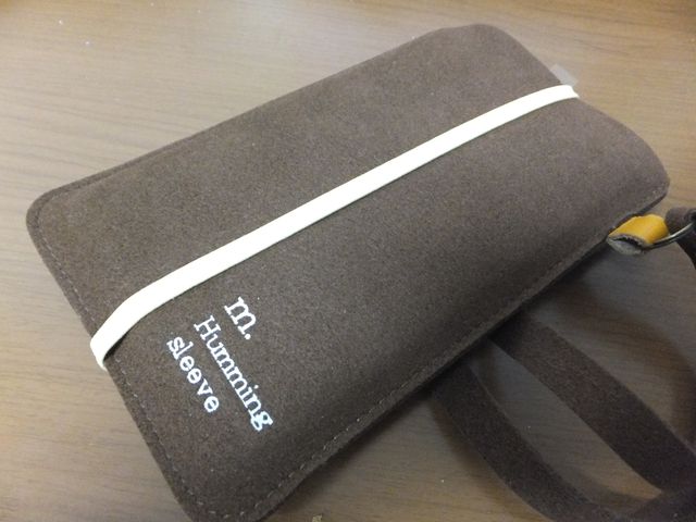 突然の購入だったため、小物はなにも買いそろえていない。端末を持ち歩くにも、液晶保護フィルムも貼っていないので、鞄にポイと放り込むのは心配だ。そこで手持ちのケースのなかでひらめいたのが、pocketgamesさんで販売のm.humming sleeveだった。実際に端末を入れてみると、見事にジャストフィット。