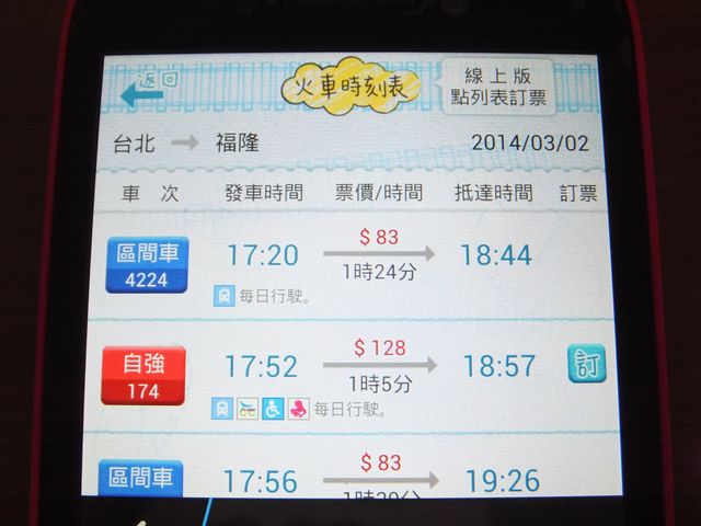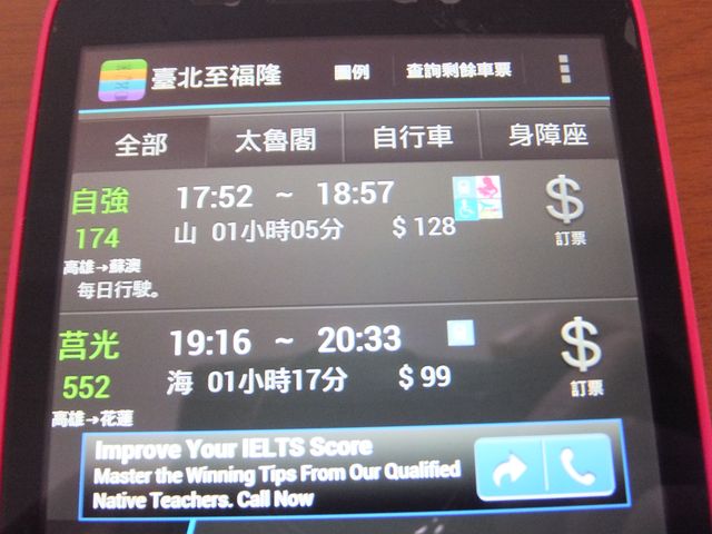 捷運と美食の検索項目は、スクロールしないと見えないが、台鐵と高鐵が使えれば特に問題はない。