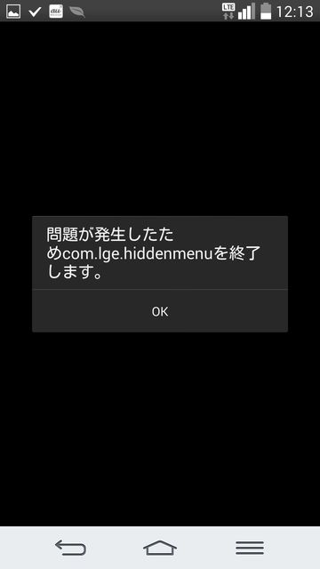 そこで、Hidden Menuから設定しようとしたら、エラーメッセージがでて設定できない。