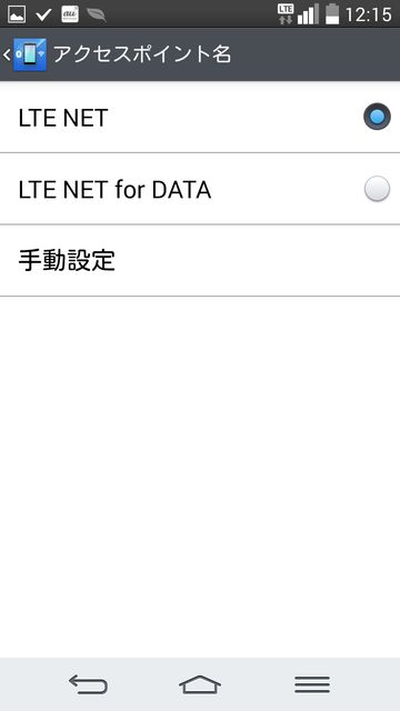 そこで、設定→システム設定→テザリングとネットワーク→モバイルネットワーク→アクセスポイント名→手動設定で、設定をしたものの、電波をつかまない状態になった。(汗)