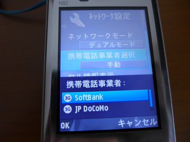 手動で通信事業者は、Softbankを選択。