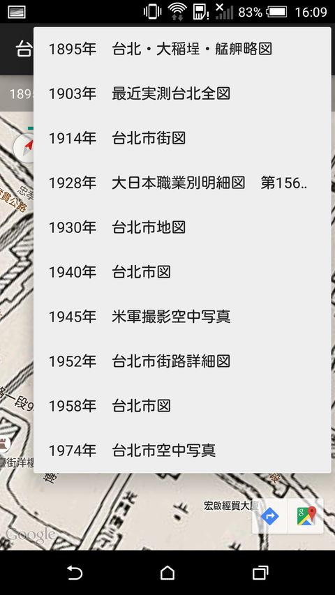 Google Playにある中央研究院數位文化中心作成のアプリ「台北歴史地図」と「臺南歷史地圖」は 、旅のお供に必要なアプリで、以前からインストール済みだった。今回上記報道に合わせて、「台北歴史地図」に更新通知が来た。