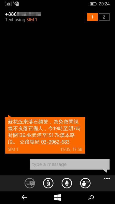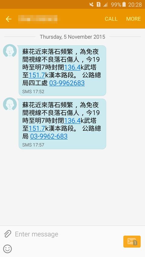 移動途中で、中華電信、遠傳、台湾大哥大3社から、同じ災害情報のSMSを受信した。何度も行った台湾だが、今回初めての受信で、記念にスクリーンショットを取っておく。