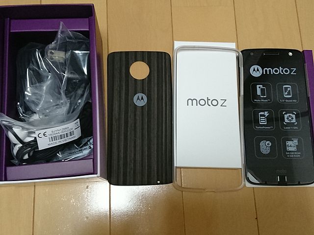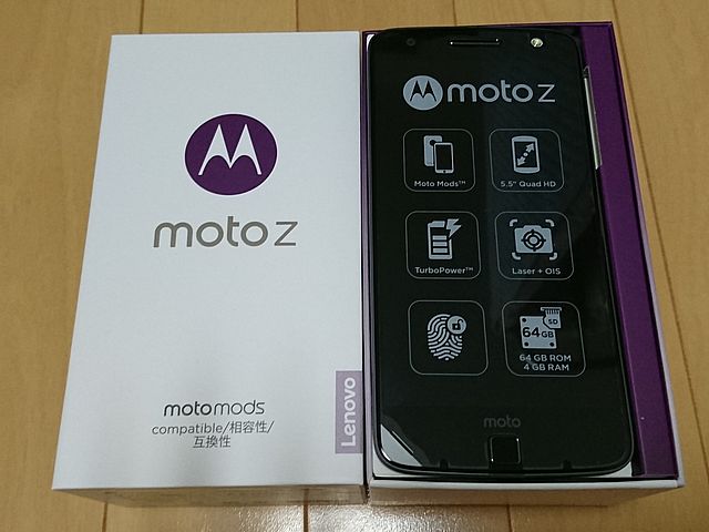 昨晩、受取完了のMoto Z。色は黒。今まで持った端末の中で最も薄く、うっかり寝モバのあと、枕元に放置したら折れるのでは?と心配になる薄さだ。