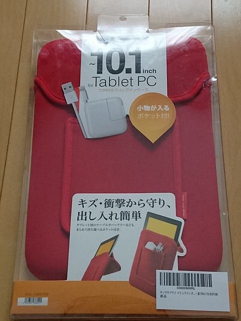 ケースは、サンワサプライのスリップインタブレットケース(10.1インチ 汎用・赤) PDA-TABSP10R を購入。ソフトタイプで、出し入れがやりやすそうなのが決め手になった。