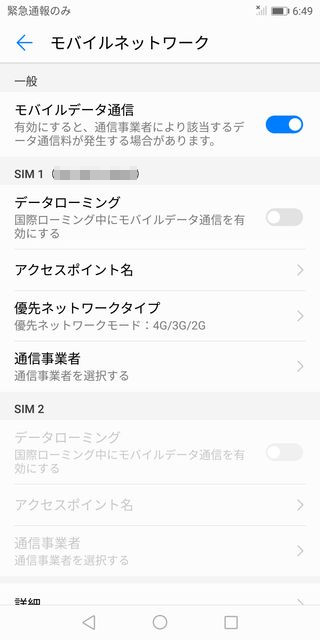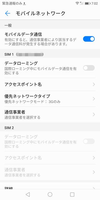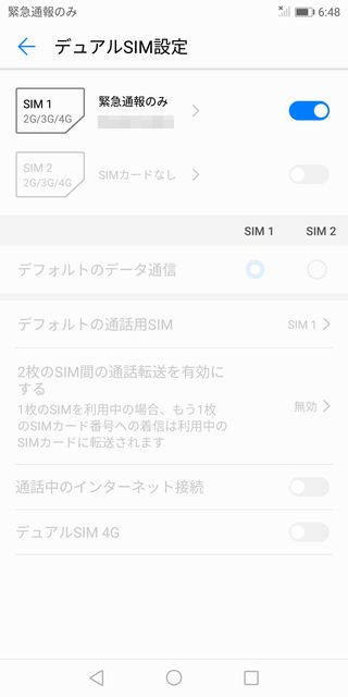 Mate 10 Proの場合、通話用は電波を拾わず、「緊急通報のみ」という表示になっている。