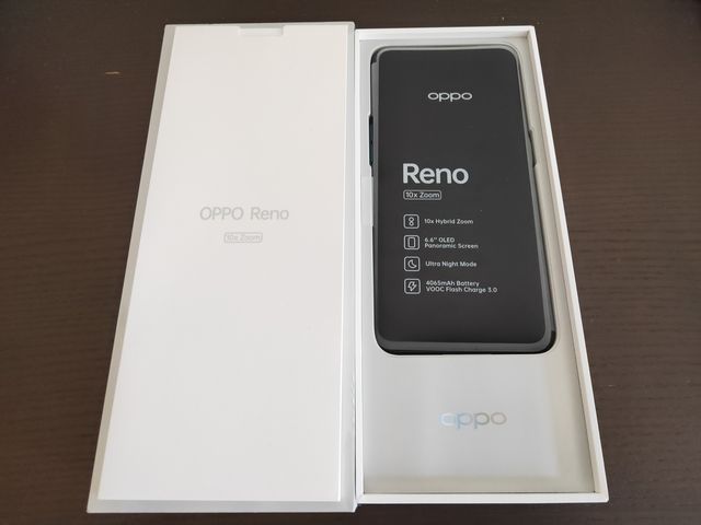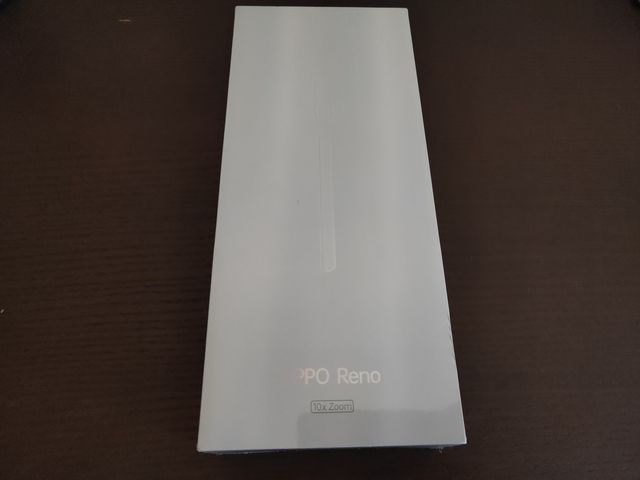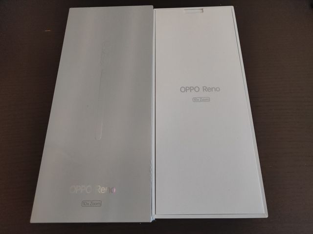 事前予約していたOPPO Reno 10x Zoom、10時開店と同時に受け取りに行った。Find Xより、縦に長い箱、そして白。